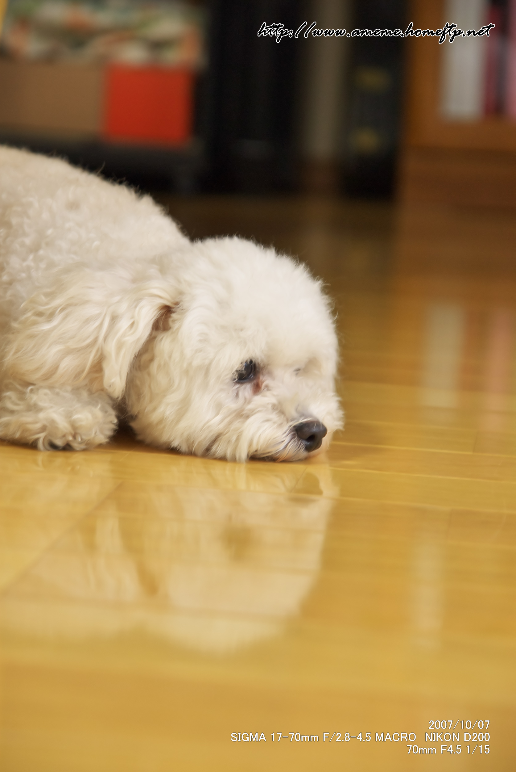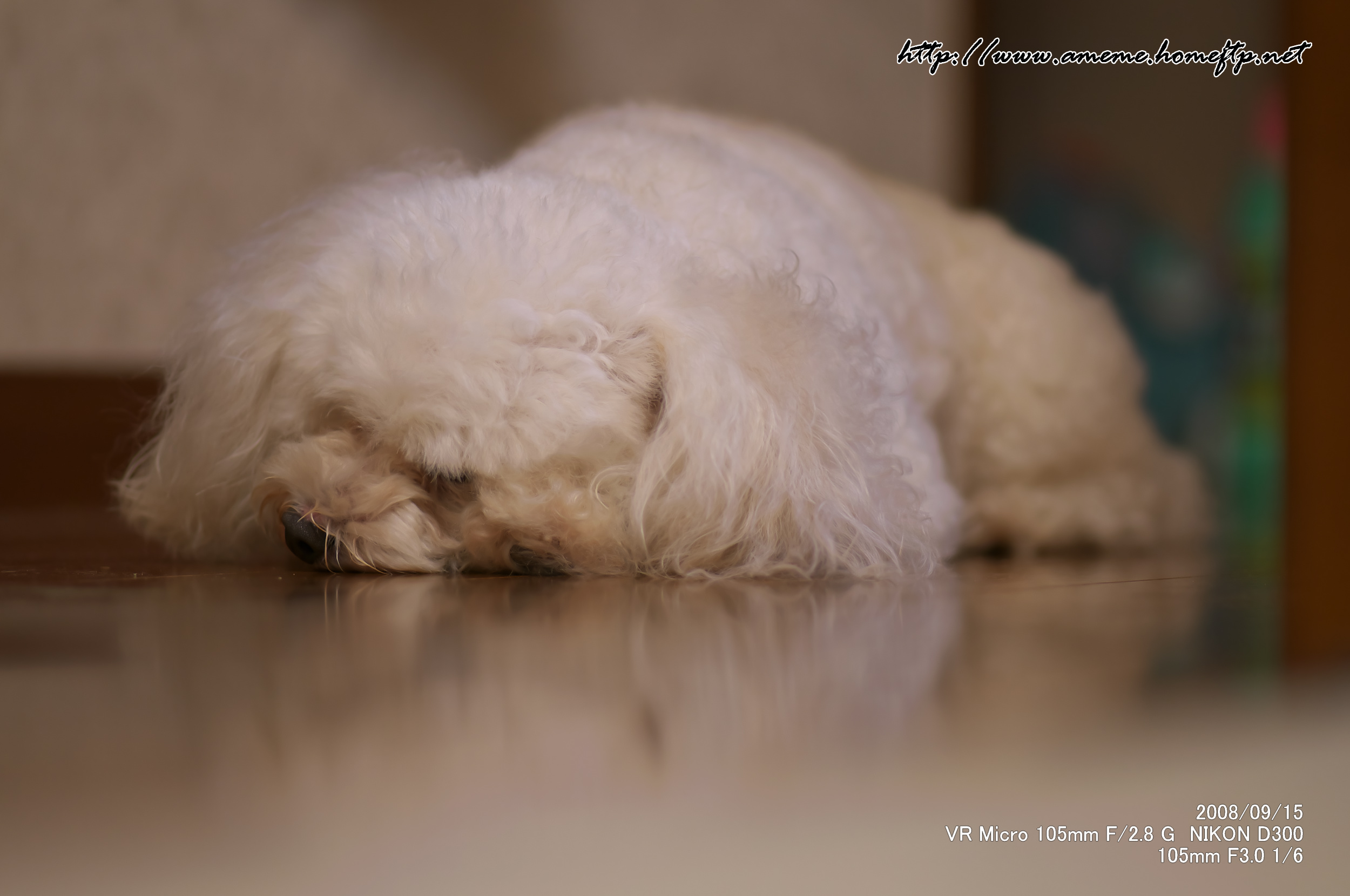 廊下のフローリングで昼寝中